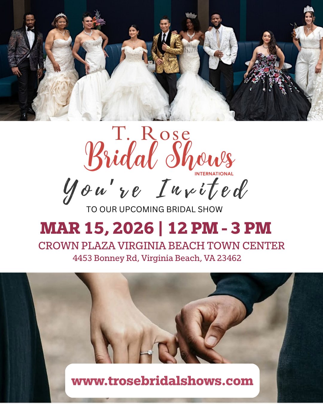T Rose Bridal Shows is the premier destination for engaged couples seeking inspiration and resources for their dream weddings. Our shows bring together top wedding professionals and vendors from across the country, providing you with the opportunity to explore the latest trends in wedding fashion, decor, and more. Take part in the opportunity to register for fabulous door prizes that include a Honeymoon give-away and discover how to plan your wedding with local area wedding professionals.